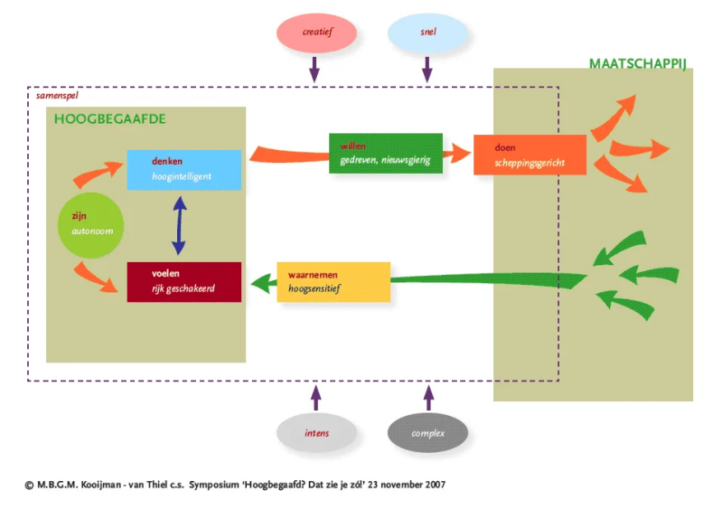 In de begeleiding rondom hoogbegaafdheid maak ik ook regelmatig gebruik van het Delphi-model. Een existentieel model dat het samenspel van innerlijke kenmerken (denken, voelen, zijn, willen, doen, waarnemen) en de wisselwerking met de buitenwereld bij hoogbegaafde volwassenen beschrijft.